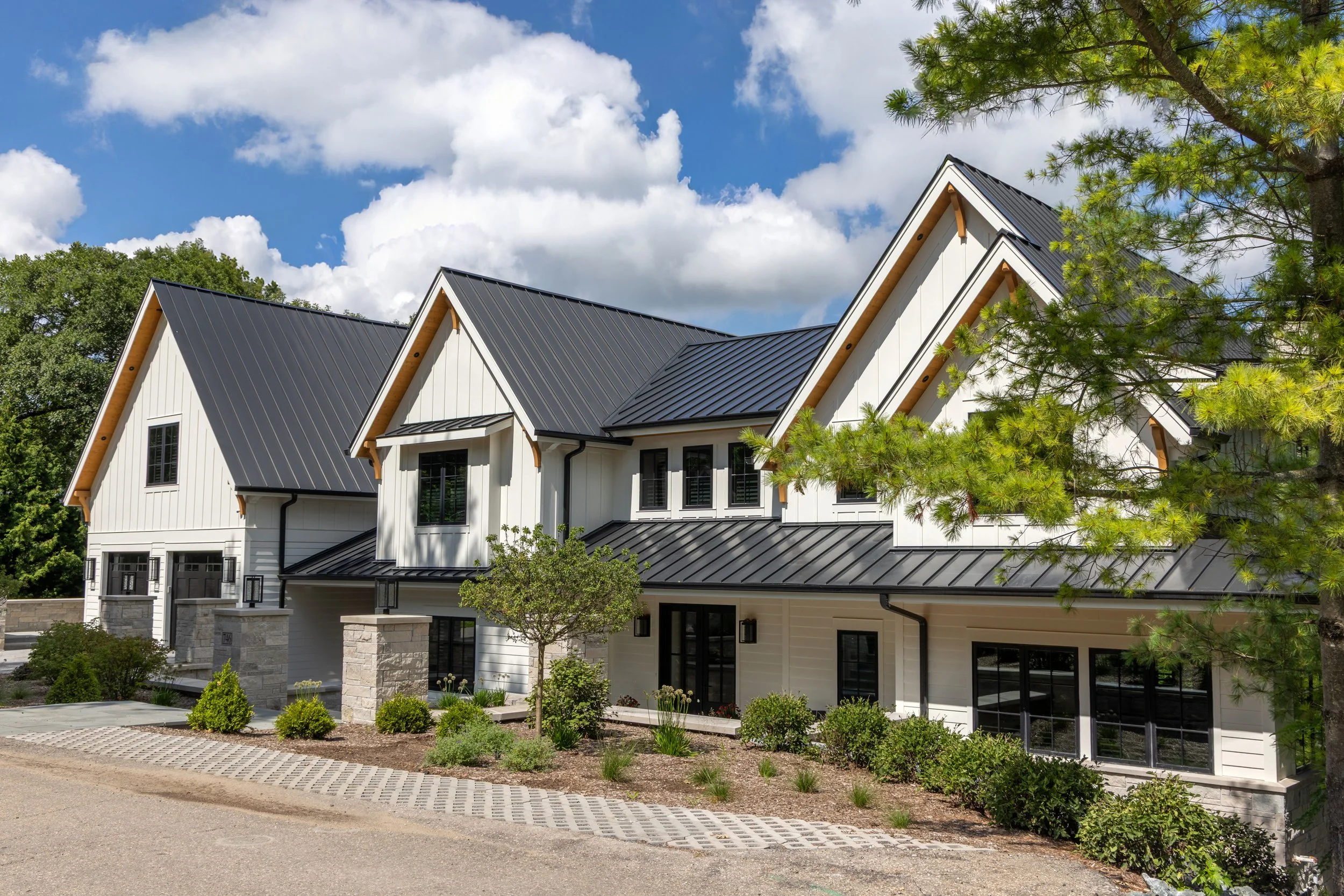 Perched atop a scenic hill in Fontana, Wisconsin, this exceptional new construction home was thoughtfully designed to maximize sweeping views while offering an unparalleled luxury retreat experience. Its striking black-and-white modern aesthetic creates a crisp, sophisticated atmosphere that remains warm and inviting.