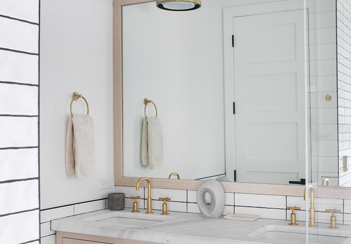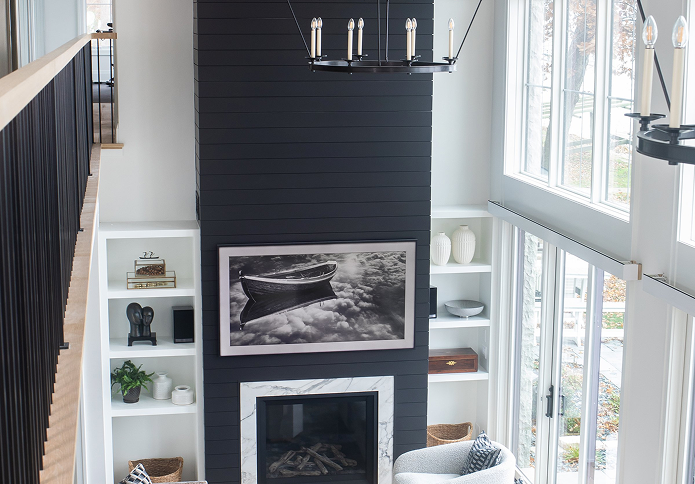 This lake home renovation project took about 8 months to complete. The main thing our client wanted to change in this home was a huge masonry fireplace that went from the lower level to the third floor. It was a complete success, mainly because the client had a vision of what she wanted — modern with a little bit of glam. She allowed Ann Kottler Home to help her every step of the way.